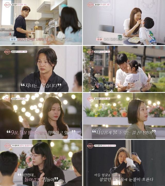 남자 중 막내인 희영은 “1년의 결혼 생활 후 갓 돌이 된 딸을 홀로 키워 왔고, 딸이 현재 일곱 살”이라고 털어놔 반전을 안겼다. 뒤이어 미영은 “결혼 유지 기간은 7년이며, 9세-5세 딸 둘을 양육 중이다. 이혼 후 아이들이 많이 힘들어하는 걸 보고 자책이 컸다”면서 오열했다.