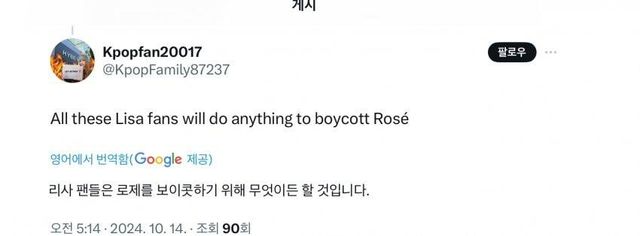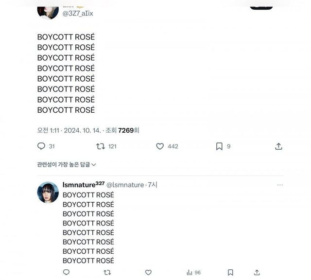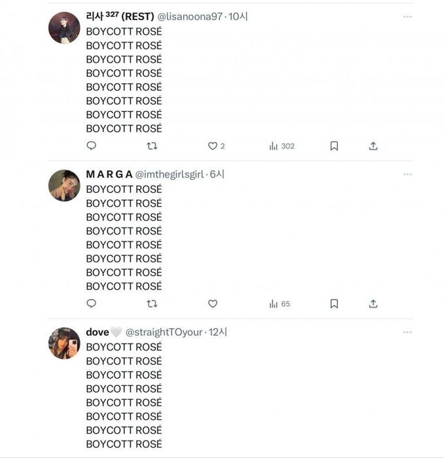 로제 솔로가리사 보다 잘 나간다고 보이콧 헌댄다 참나여자가수인데 걸콧을 해야지무식한 넘들