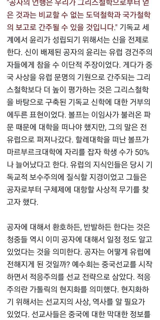 공자의 민본주의 사상은 유럽에 큰 영향을 끼치고, 민주주의 체계화에 큰 영향을 미친다