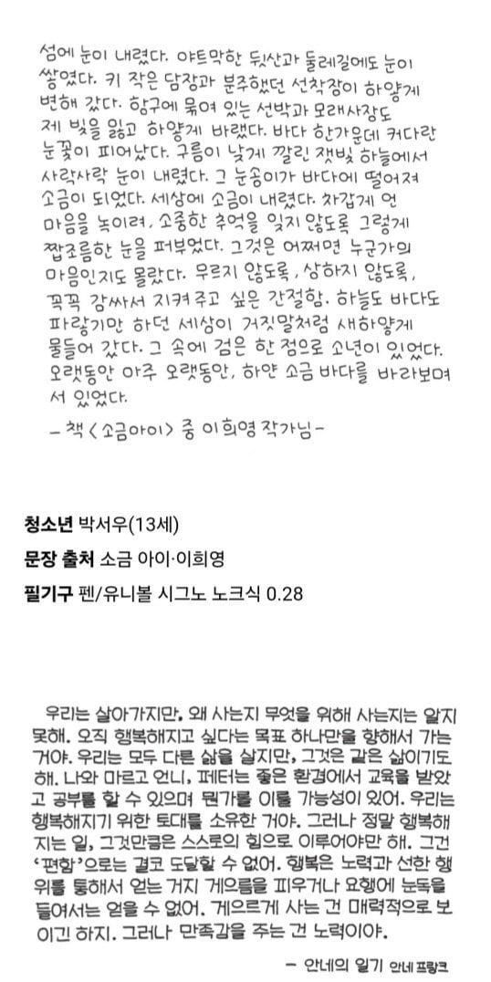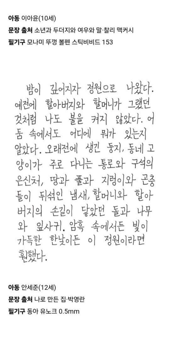 [스압] 교보 손글씨 대회 수상작,,