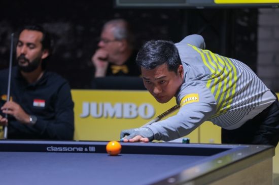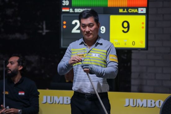 (엑스포츠뉴스 이정범 기자) '베겔 3쿠션 당구월드컵' 차명종 선수의 경기 모습이 눈길을 끈다.