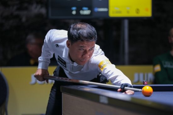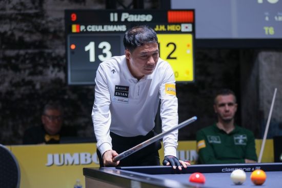 (엑스포츠뉴스 이정범 기자) '베겔 3쿠션 당구월드컵' 허정한 선수의 경기 모습이 눈길을 끈다.