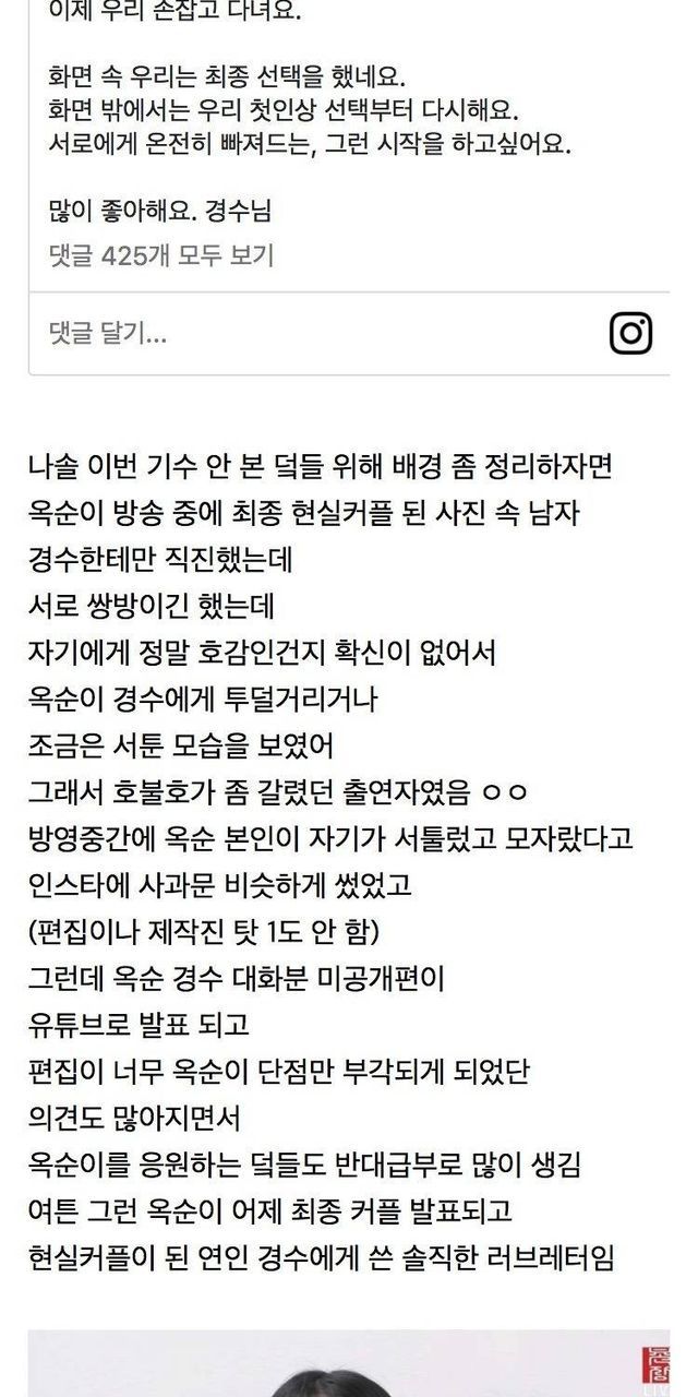 나는솔로 돌싱특집 옥순이 경수에게 보내는 편지.jpg..