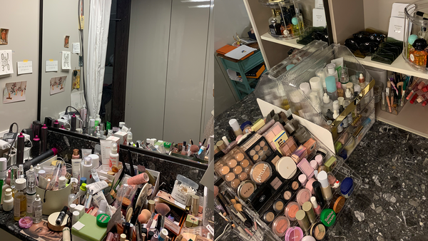 정 씨는 테무에서 구매한 투명 아크릴 정리함에 아이섀도와 블러셔 등을 분류해 정리했다. 투명 선반에는 스킨케어 제품을 배치했다. 주방 용품으로 알려진 2단 양념회전대에는 크기가 큰 향수들을 보관했다. 테무 구입 아이템을 통해 손쉽게 사용할 수 있도록 했다는 것이 그의 설명이다. 또한 립스틱 홀더, 메이크업 오거나이저 등 다양한 소품을 활용해 어수선했던 화장대를 말끔하게 정리했다.