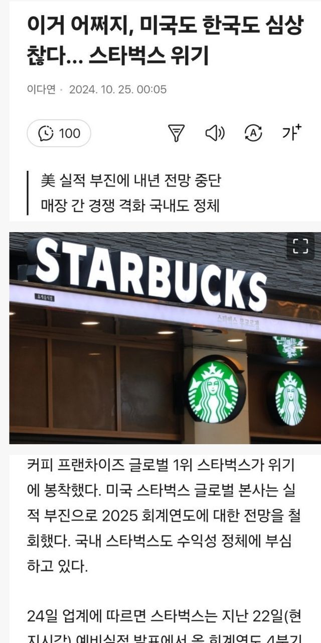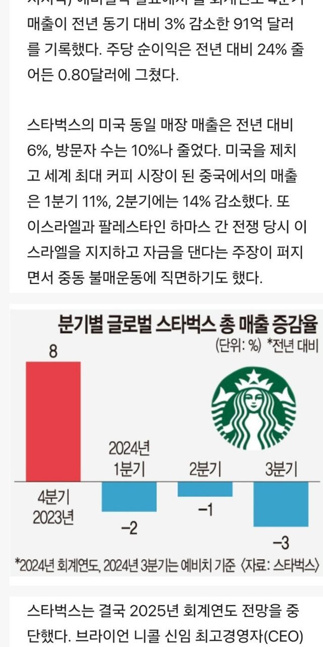 미국 스타벅스는 올해부터, 마이너스 성장 돌입