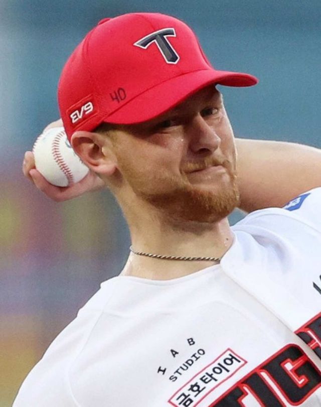 역투하고 있는 에릭 라우어. / 연합뉴스