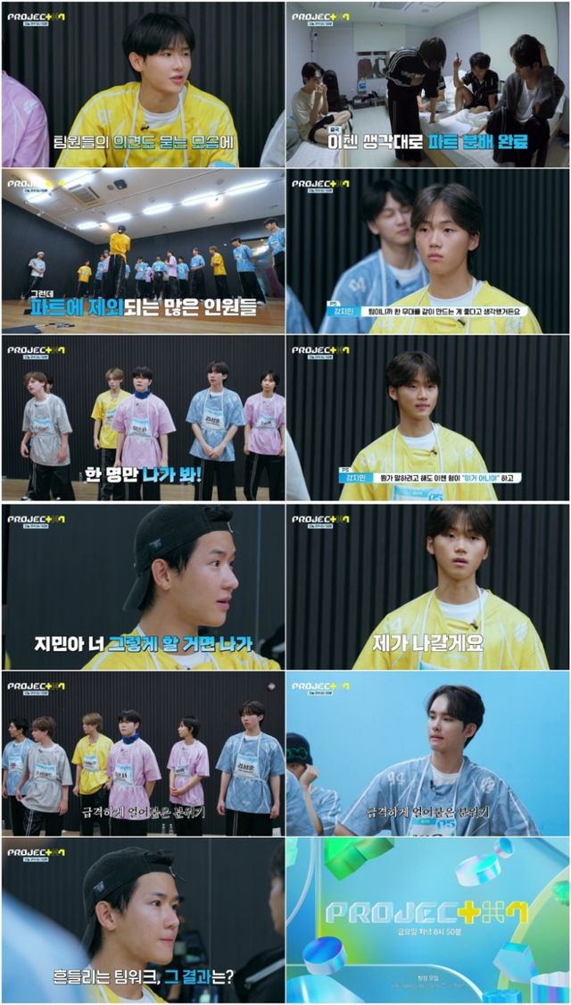 지난 18일1, 2회 연속 방송된 ‘프로젝트7’에서는 계급장 뗀 ‘제로 세팅’으로 선발된 100명의 연습생들이 ‘타이틀 송 달려(Up to you)’ 프로젝트를 완성하기 위해 ‘자체 조립 평가’로 팀을 구성한 후 고군분투하는 모습이 담겼다.