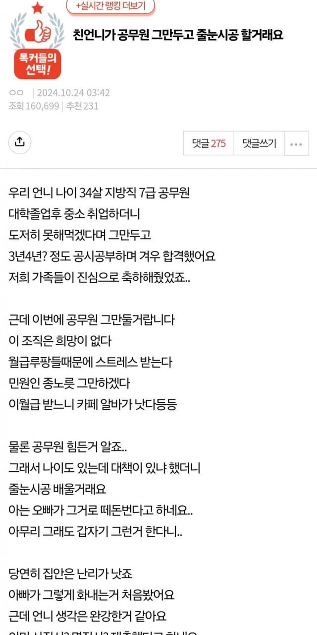 이미 공무원직에서 데미지가 쌓여왔나보네 ㄹㅇ...