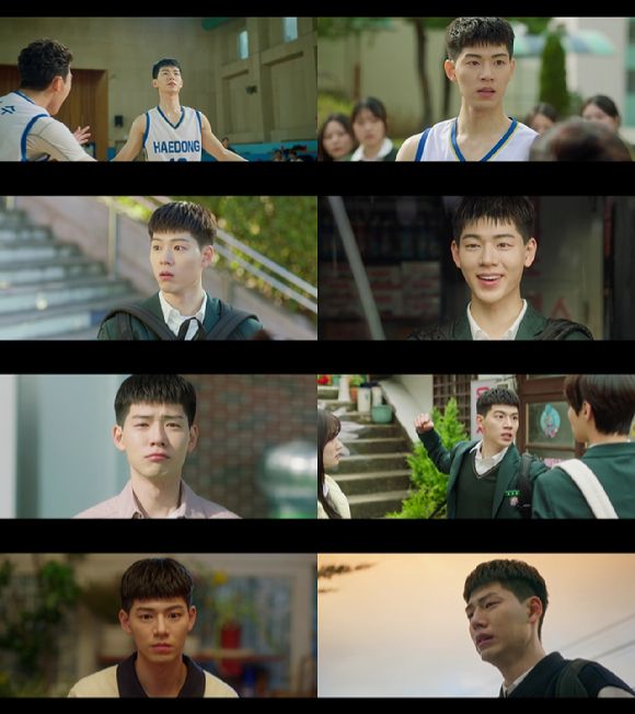 앞서 강해준(배현성 분)은 학교 농구부에서 활약하며 모범생 김산하(황인엽 분)와는 다른 매력으로 교내 여학생들의 마음을 뺐었다. 열정 가득한 에너지와 특유의 소년미(美)로 전설의 농구부 선배 포스를 뽐내 윤주원(정채연 분)의 친구 박달(서지혜 분)까지 반하게 만들었지만 집에서는 영락없는 김산하와 윤주원의 놀림감으로 전락해 웃음을 선사했다.