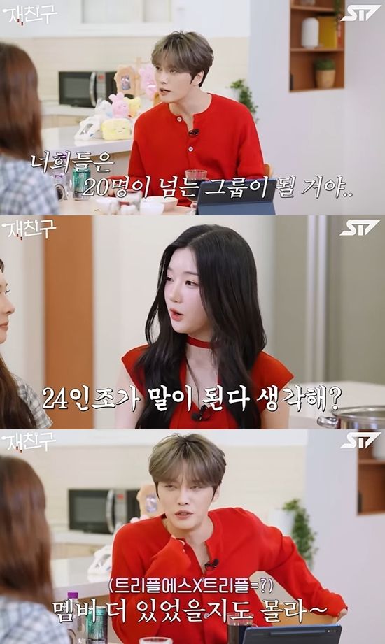 24일 김재중의 개인 유튜브 채널 '재친구'에는 '[SUB] 밤마다 야식 파티 중 | 트리플에스 김재중'라는 제목의 영상이 게시됐다. 이날 영상에는 24인조 걸그룹 트리플에스(triple S)의 유연과 코토네가 게스트로 출연해 다양한 이야기를 나누는 장면이 공개됐다.