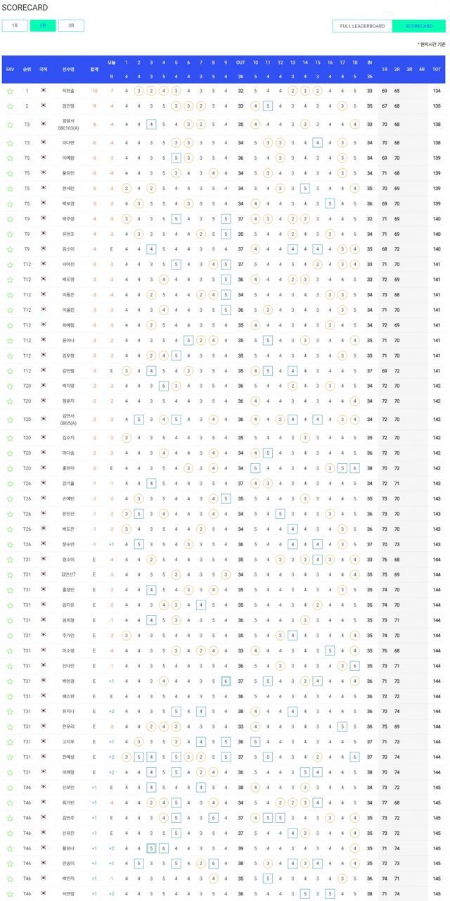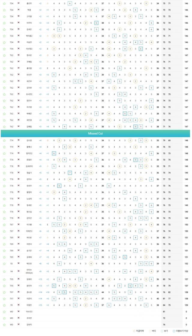 컷탈락 T74.김나영-문정민 +4, T78.노승희-방신실 +5, T87.이채은2 +6, T89.허다빈-송가은-김재희 +7, 99.이정민 +15