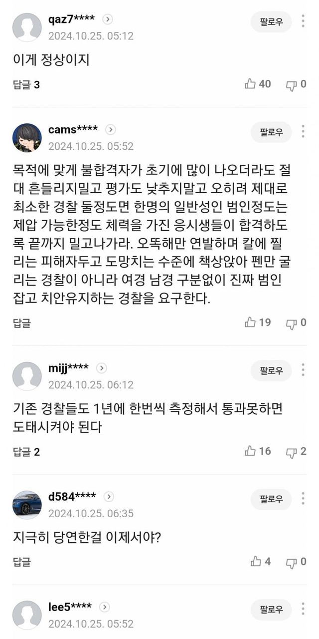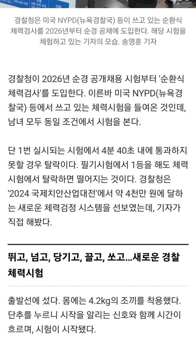 체력시험 도입하고 남녀 같은 조건, 기준으로