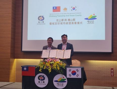 최재구 예산군수는 “이번 우호교류 협약식을 통해 예산군‧지상향의 문화, 경제, 산업 등 다양한 분야의 글로벌 교류를 증진해 나갈 것이며, 나아가 대만에서 K-문화 산업이 자리잡도록 최선의 노력을 다해가겠다.”고 전했다.