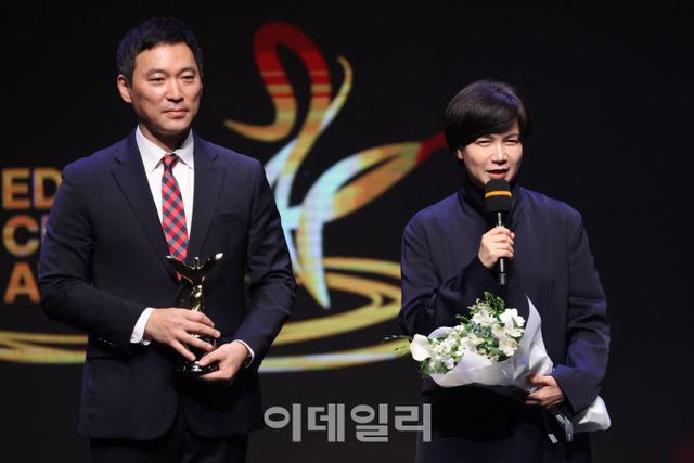 25일 서울 종로구 세종문화회관에서 열린 ‘제11회 이데일리 문화대상’ 시상식에선 콜레기움 보칼레 서울의 김선아 지휘자, 김세웅 단장이 최우수상 수상자로 무대에 올랐다.
