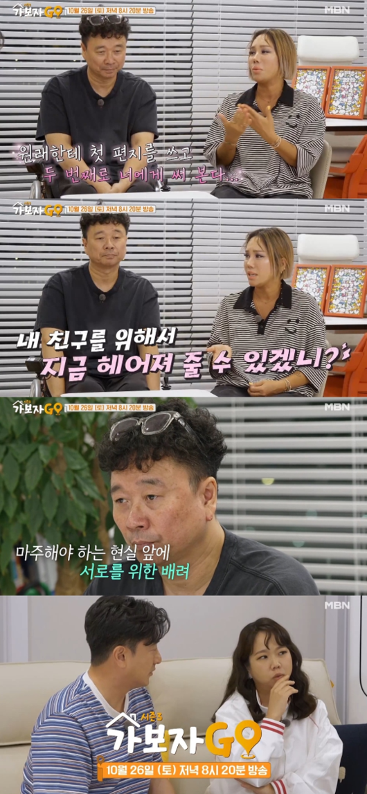 26일 방송되는 MBN 리얼 버라이어티 '가보자GO' 시즌3에서는 연예계 대표 잉꼬부부인 강원래와 김송이 출연해 솔직한 이야기를 나눴다. 특히 강원래의 교통사고 이후 두 사람이 겪었던 힘든 시기를 공개하며 감동을 선사했다.