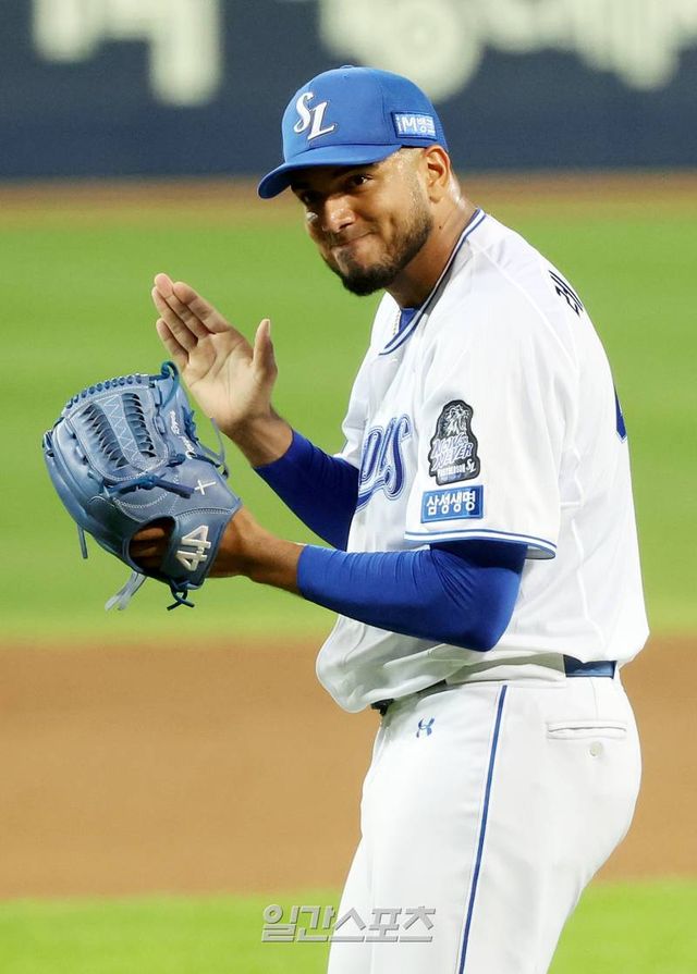 레예스는 지난 13일에 대구에서 열린 PO 1차전서 6과 3분의 2이닝 3실점(1자책)으로 선방했다. 19일 서울 잠실 PO 4차전에선 7이닝 무실점으로 호투하며 2승을 거뒀다. 1선발 코너 시볼드가 견갑골 통증으로 결장한 뒤 에이스 역할을 하고 있는 레예스는 KS에서도 호투를 이어갔다.