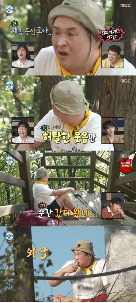 구성환은 헛구역질까지 하면서 계속 오르던 도중 등산로 표지판을 정상 표지판으로 순간 착각했다가 뒤늦게 진실을 알고 망연자실했다.