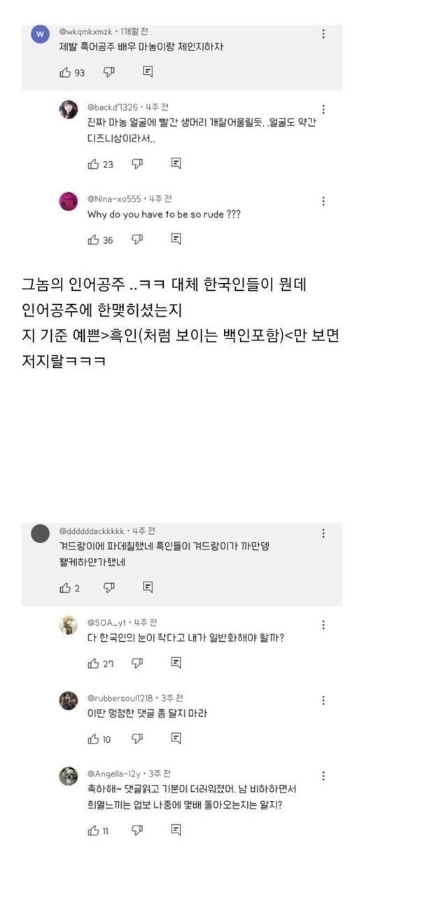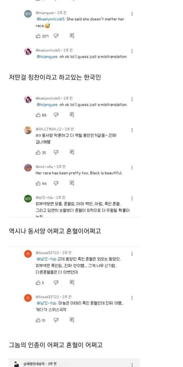 인종차별 발언인지도 모르고 칭찬하는 한국인들