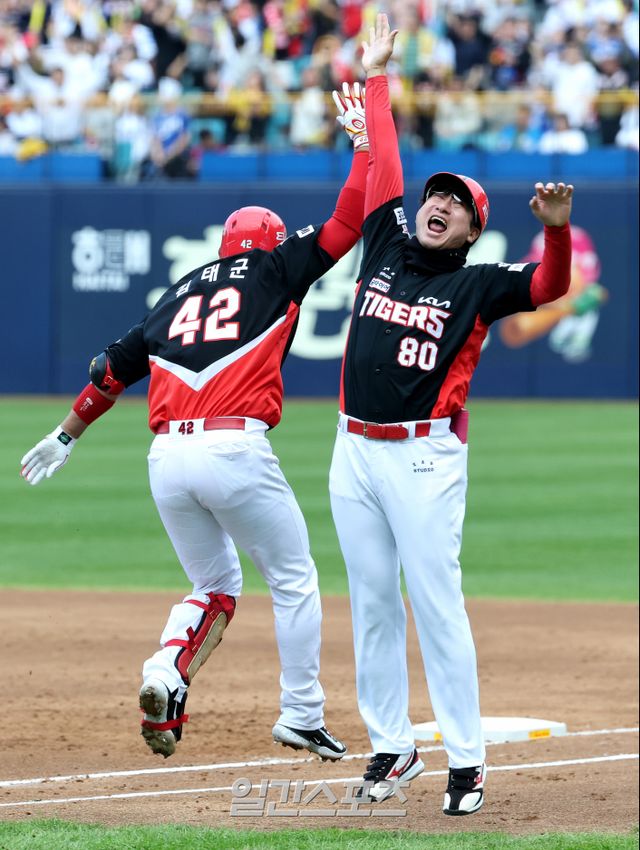 KS에서 만루 홈런이 나온 건 역대 5번째. 앞서 이 기록을 해낸 건 1982년 김유동(당시 OB 베어스) 2001년 김동주(당시 두산 베어스) 2012년 최형우(당시 삼성) 2017년 이범호(당시 KIA)이다. 네 번의 KS 만루 홈런이 모두 팀 우승으로 연결됐다는 걸 고려하면 의미가 크다. 특히 7년 전 KIA는 이범호 감독의 만루 홈런으로 우승의 밑거름을 만들었다. 아울러 김태군의 개인 통산 첫 만루 홈런. 2008년 데뷔한 김태군은 정규시즌 통산 3618타석에서 홈런 32개(연평균 1.88홈런)를 기록했는데 솔로 홈런 21개, 2점 홈런 7개, 3점 홈런 4개가 전부였다.