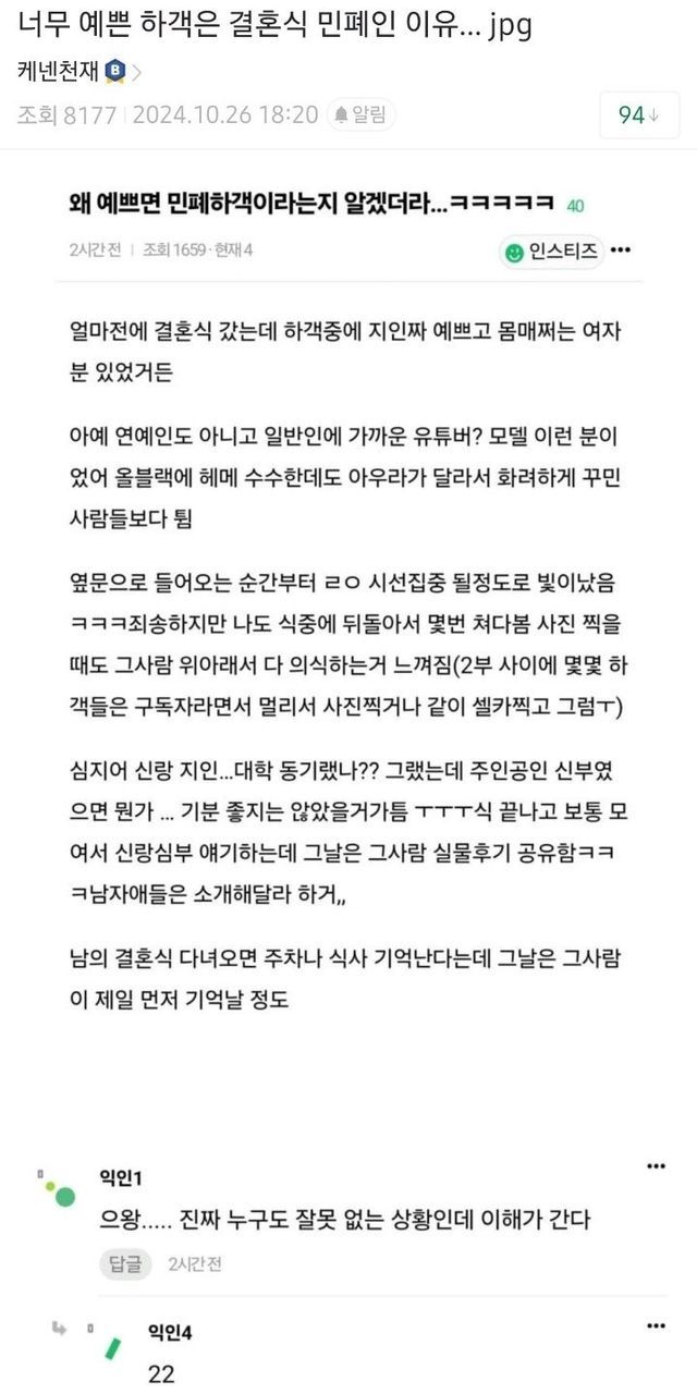 드레스 입은 신부조차 가리는 외모면 난감할듯