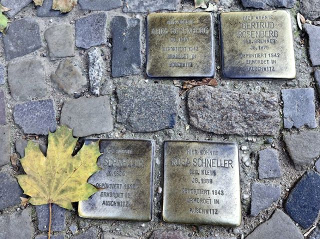 유럽의 도시들을 가보면 보행자들이 오가는 길거리 바닥에 특이한 표식판들이 눈길을 끈다. 위대한 예술가의 탄생지나 기념비적 방문지 같은 곳을 가리키는 표식판도 있고, 전쟁 영웅을 기리는 표식판들도 있다. 홀로코스트 희생자를 기리는 추모판들도 제법 많다. 크기는 일정하진 않지만 대체로 가로-세로 10cm쯤이고 황동 또는 대리석으로 만들었다. 희생자 개인의 이름, 출생연도, 강제수용소 이송연도(대개는 1940-1943년 사이), 이송지(숨진 곳)가 짧게 적혀있다. 이를테면, '여기에 볼프강 호르스트 칸닌카가 살았다. 1926년생, 1942년 민스크로 강제 이주' 등이다.
