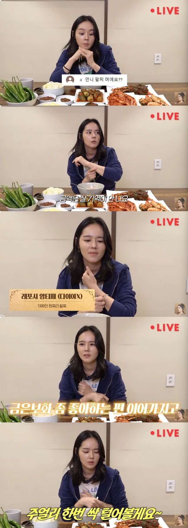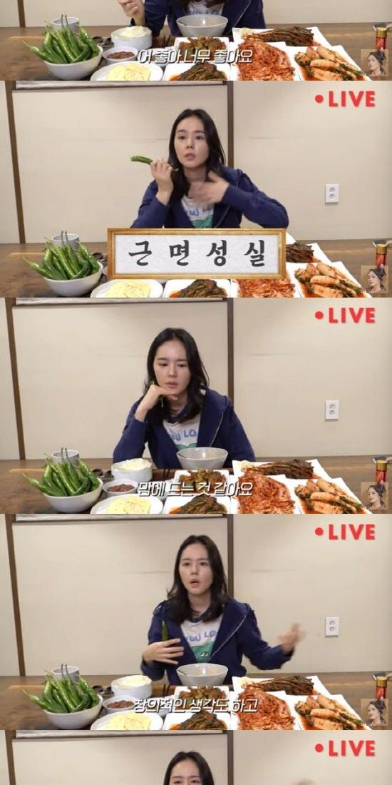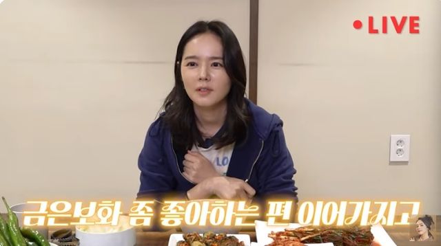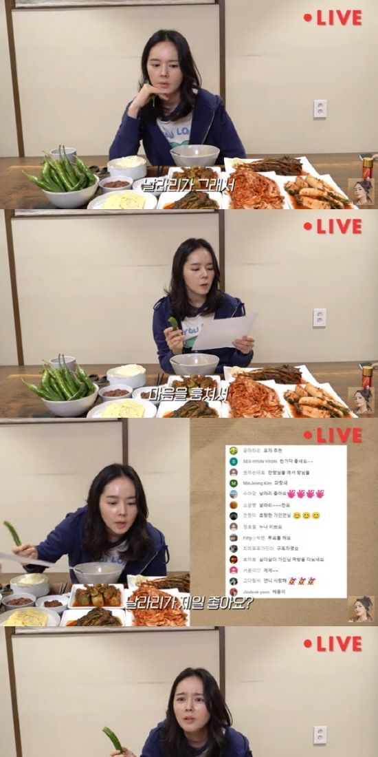 한가인은 "구독자 15만명을 넘은 기념으로 QNA 시간도 갖고 김치 먹방도 할겸 라이브를 하겠다. 라방 처음이라 떨린다"라고 인사했다.