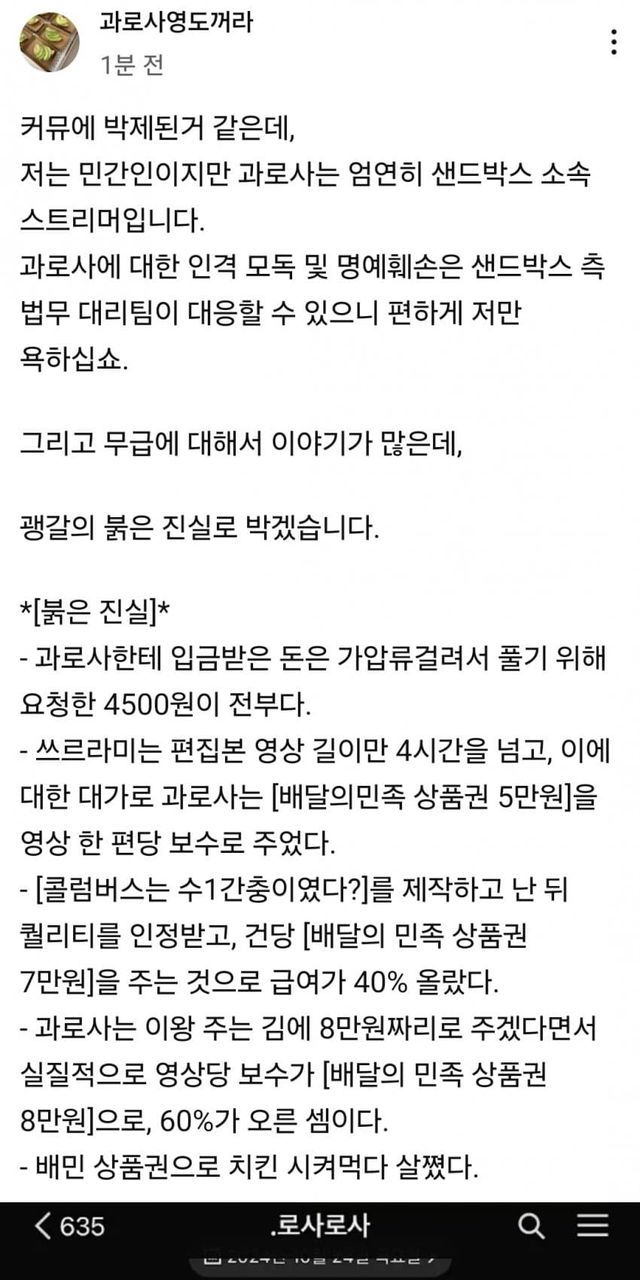 +)유튜브 커뮤니티에 올라오는 이벤트나 몇몇 영상은 과로사랑 상의도 안하고 독단적으로 올린 게 많아서 개인적으로 스트레스도 많이 받았다고 함