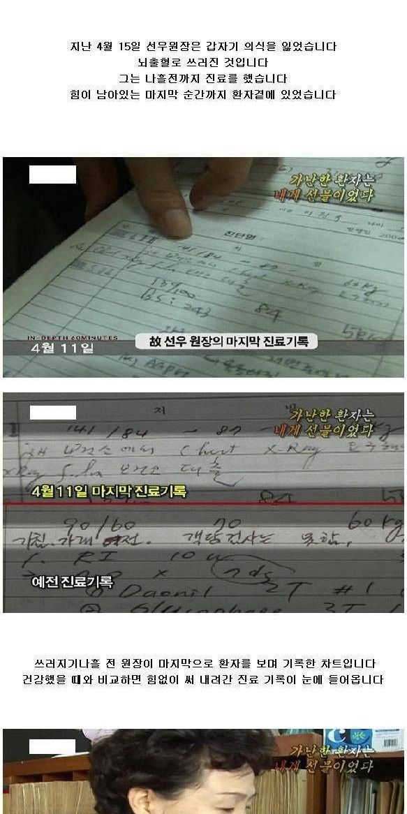 자신의 병이 커져감에도 불구하고 환자를 향한 고인의 손길은 멈추지 않았다 거동이 힘들고 뇌출혈