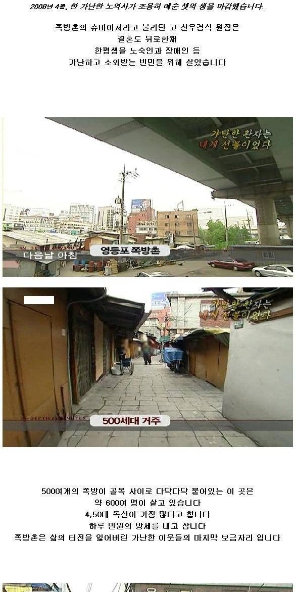 로 쓰러지기 직전까지 환자를 돌보다 간 것 그런 그의 마음 때문이었을까 영등포 쪽방촌 사람들에게