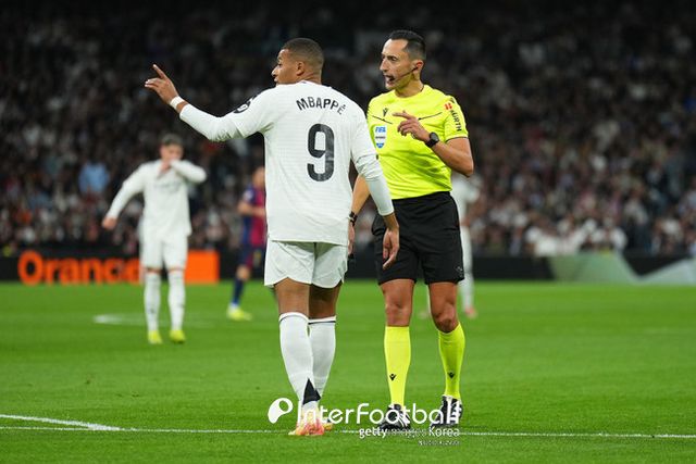음바페는 오프사이드에 또 당했다. 전반 30분 수비를 뚫어내고 골을 터트렸는데 오프사이드로 판정돼 취소됐다. 오프사이드 트랩 전술에 성공한 바르셀로나는 반격을 했다. 전반 37분 야말이 슈팅을 했지만 무위에 그쳤다. 치열한 공방전에도 전반에 골은 나오지 않았다. 오프사이드 트랩에 당한 레알은 더 아쉬움을 삼킨 채 그라운드를 나갔다.