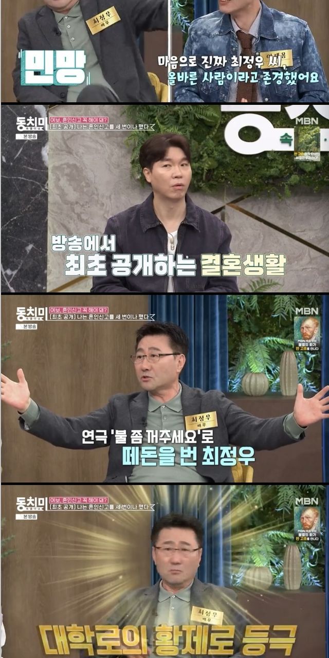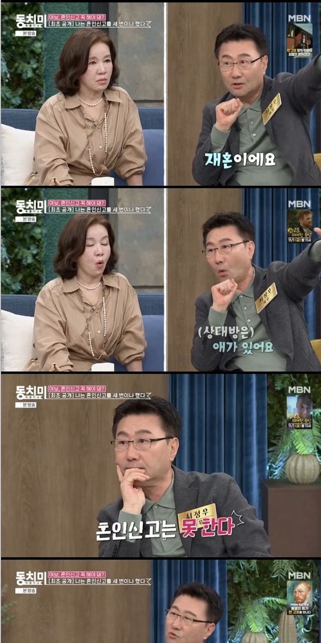 26일 방송한 MBN '속풀이쇼 동치미'는 '여보, 혼인신고 꼭 해야 해?'라는 주제로 꾸며진 가운데 배우 최정우가 출연했다.