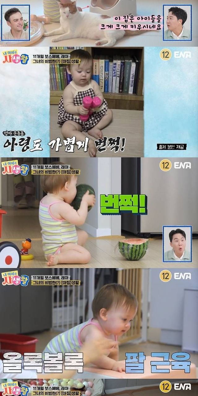 11개월이 된 딸 레아는 일어나자마자 "아 잘잤다"라고 말해며 귀여움을 뽐냈다.
