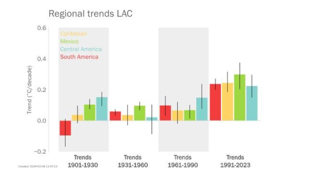 세계기상기구(WMO)는 2023년 엘니뇨와 기후 변화가 중남미와 카리브해 지역에 초래한 심각한 재난 상황을 강조하며, 기후 변화로 인한 자연재해와 경제적, 사회적 충격이 이 지역에 큰 타격을 입혔다고 보고했다.