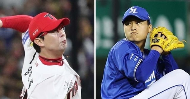 KIA 양현종(왼쪽)과 삼성 이승현. / 뉴스1