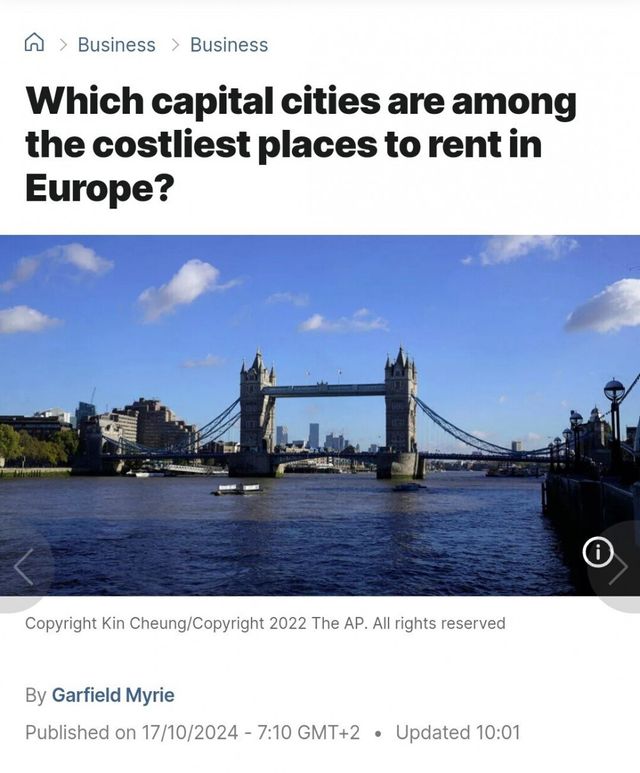 유로뉴스에서 말한 2024년 유럽의 월세 가격 높은 대도시들이란 내용이 몇일전에 올라옴. 기준은 원베드룸 즉 한국으로 치면 9-15평 기준.