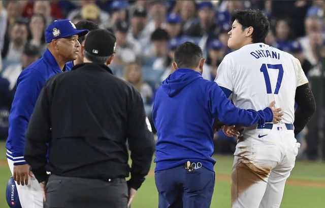 오타니는 일어서지 못한 채 극심한 고통을 호소했다. 데이브 로버츠 감독과 통역, 트레이너가 달려나와 몸 상태를 살폈다. 결국 오타니는 트레이너의 부축을 받으며 더그아웃으로 돌아갔다.