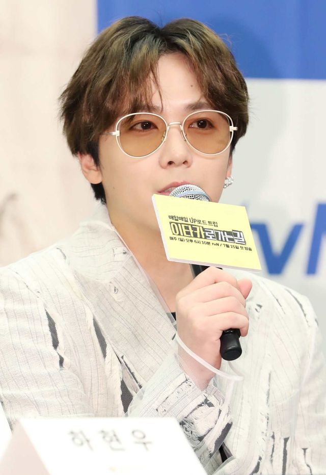 가수 이홍기가 2018년 7월 11일 오전 서울 마포구 스탠포드호텔에서 진행된 tvN 예능 프로그램 '이타카로 가는 길' 제작발표회에 참석해 인사말을 전하고 있다. / 뉴스1