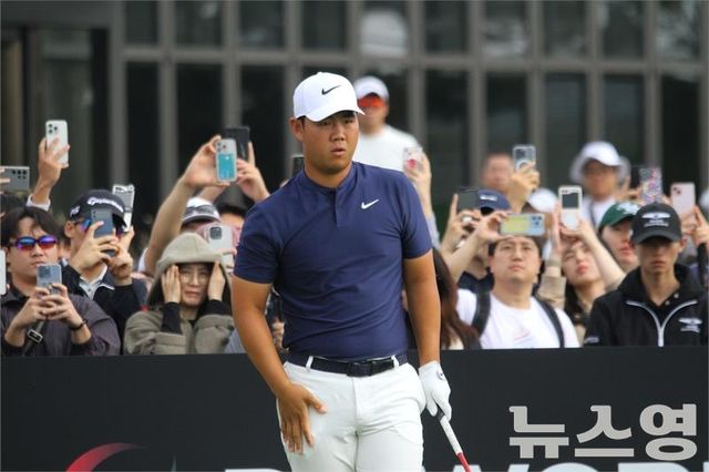 (인천=뉴스영 김영식 기자) 김주형(22, 나이키)이 27일 1번 홀(파4) 티잉그라운드에서 티샷하기 전 목표를 바라보고 있다.