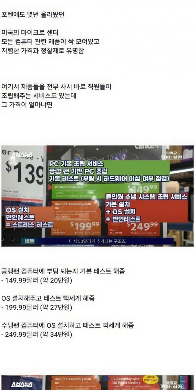 미국에서 컴퓨터 조립하는데 들어가는 공임..
