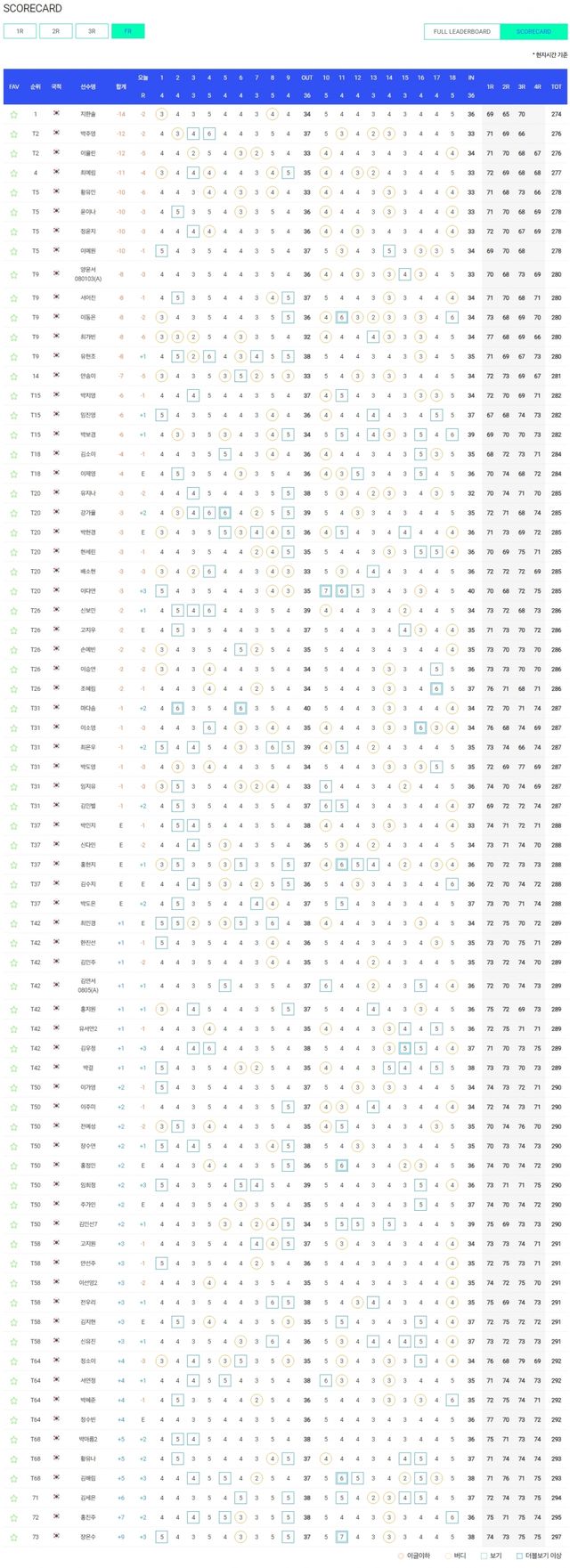 -컷오프 : 2024년(3오버파 147타 73명) 2023년(6오버파 150타 69명) 2022년(1오버파 145타 63명)
