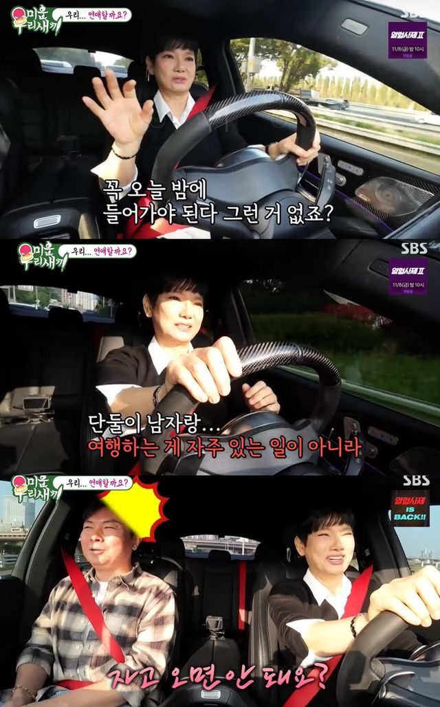 안문숙은 "단둘이 남자랑 여행하는 게 자주 있는 아니다"고 말하자 임원희는 "여행이었어요? 나들이인 줄 알았다"며 당황하는 기색을 보였다.