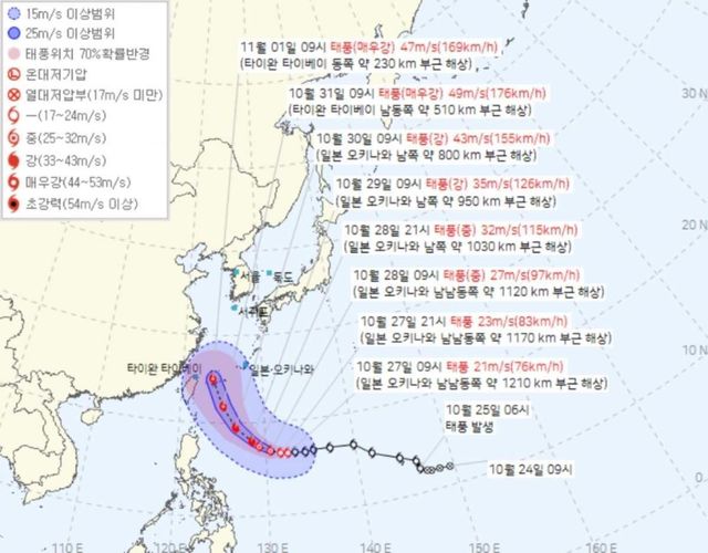 기상청은 “태풍의 위치가 4일에서 5일 후 변동될 수 있으니, 이후 발표되는 기상 정보를 꼭 확인해달라”고 이날 전했다.