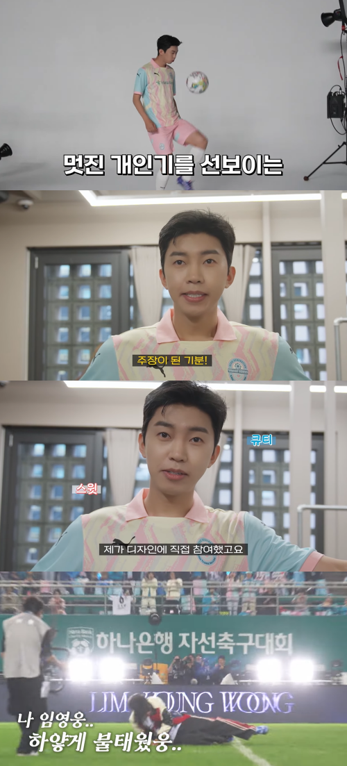이날 영상에서 임영웅은 지난 7월 진행된 자선경기 프로필 촬영 현장에서 모습을 드러냈다. 임영웅은 “유니폼을 입고 있고 상당히 텐션이 좋은상태”라며 “임영웅 팀 VS 기성용 팀 경기다. 저를 포함한 3명이 프로필 촬영 예정이다”라고 설명했다.