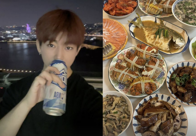 사진 속 진화는 바다 야경을 배경으로 캔맥주를 들고 마시고 있다. 또 다른 사진에서는 지인들과 푸짐한 한상을 차려놓고 맥주를 곁들이는 모습이다.