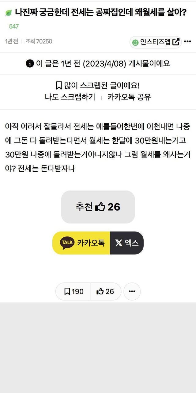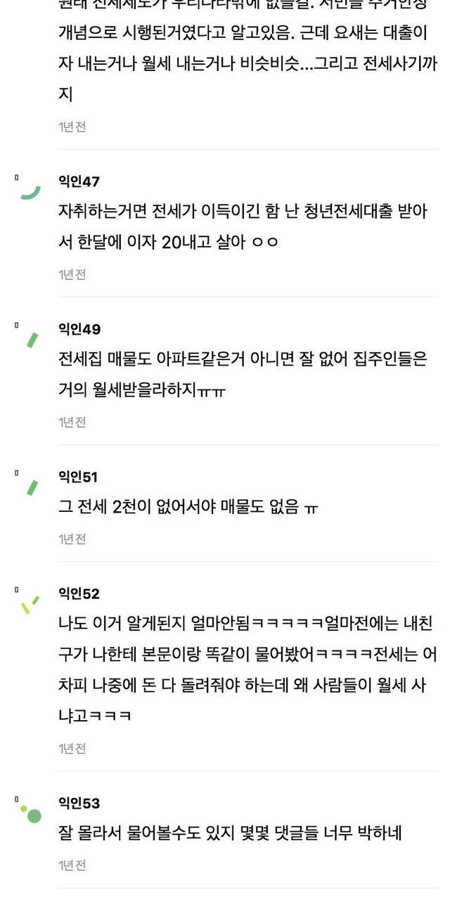 나진짜 궁금한데 전세는 공짜집인데 왜월세를 살아?..