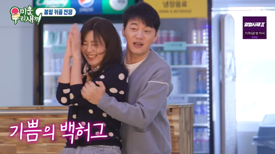 볼링 데이트에 나선 김승수와 양정아는 볼링에서 승리하자 손깍지를 끼더니 백허그까지 하며 남다른 스킨십을 보였다. 신동엽은 "어떻게 저럴 수 있지. 이렇게 (손깍지만) 잡았는데 어떻게 돌아가냐"고 신기함을 보였다.