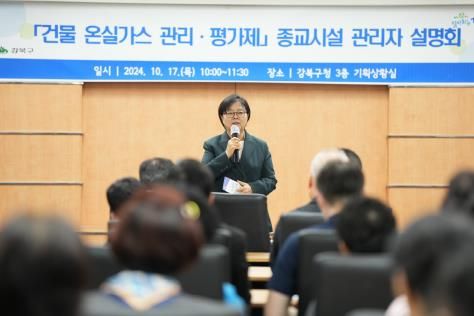 [파이낸셜경제=김영란 기자] 서울 강북구는 지난 17일 구청 기획상황실에서 종교시설 관리자를 대상으로 ‘건물 온실가스 관리·평가제 설명회'를 개최했다.