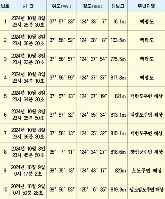 북한 무인기 분석 결과 주장에 따르면 10월 8일 23시 25분 30초 백령도에서 이륙해 북한 영공을 침범했다. 황해남도 장연군과 초도주변의 해상을 지나 남조압도 주변 해상까지 비행하다가 변침해 남포시 천리마 구역 상공을 거쳐 평양 상공에 침입했다는 설명이다.