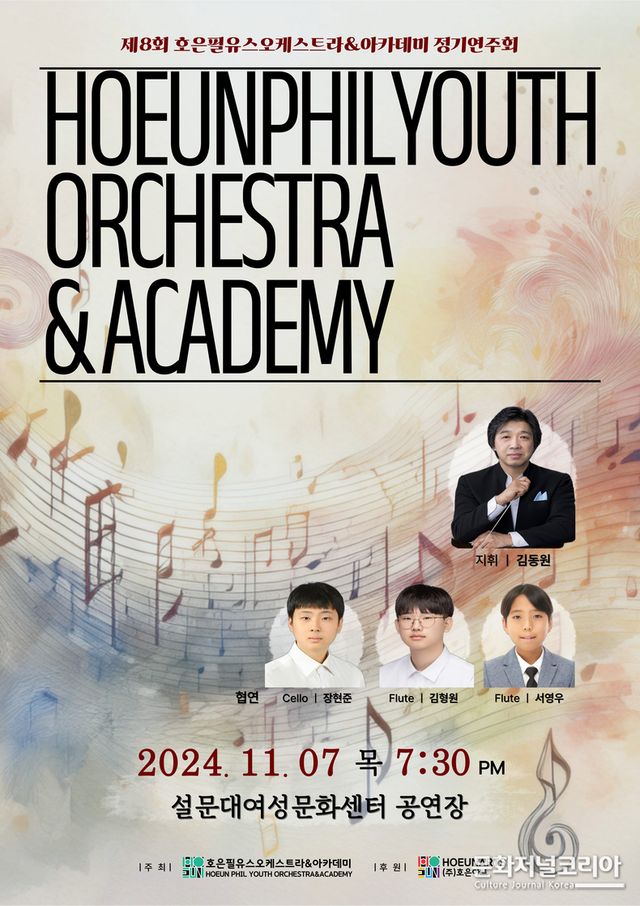 주최 및 주관에는 호은필유스오케스트라&아카데미, 후원에는 ㈜호은아트가 함께한다. 한편 제8회 호은필유스오케스트라&아카데미 정기 연주회는 선착순 무료입장으로 관람이 가능하다.