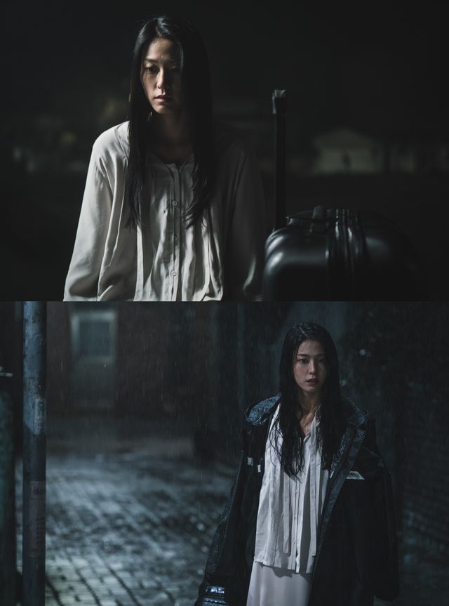 지영은 어두운 버스 정류장에 홀로 앉아 누군가를 기다리는 모습으로 시청자들에게 궁금증을 불러일으키는 인물이다. 긴 머리카락이 흘러내린 채로 고개를 푹 숙이고 있어 보는 것만으로도 스산함을 느끼게 하는 그의 모습부터 비 오는 골목길을 헤매는 모습은 '조명가게'의 장르적 무드를 배가시킨다.